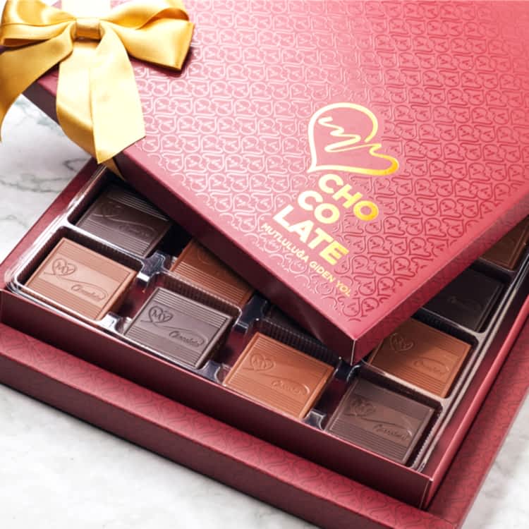 Ziyaretlerin vazgeçilmezi Madlen Çikolatalarımız Sütlü ve Bitter olmak üzere karışık kutu.